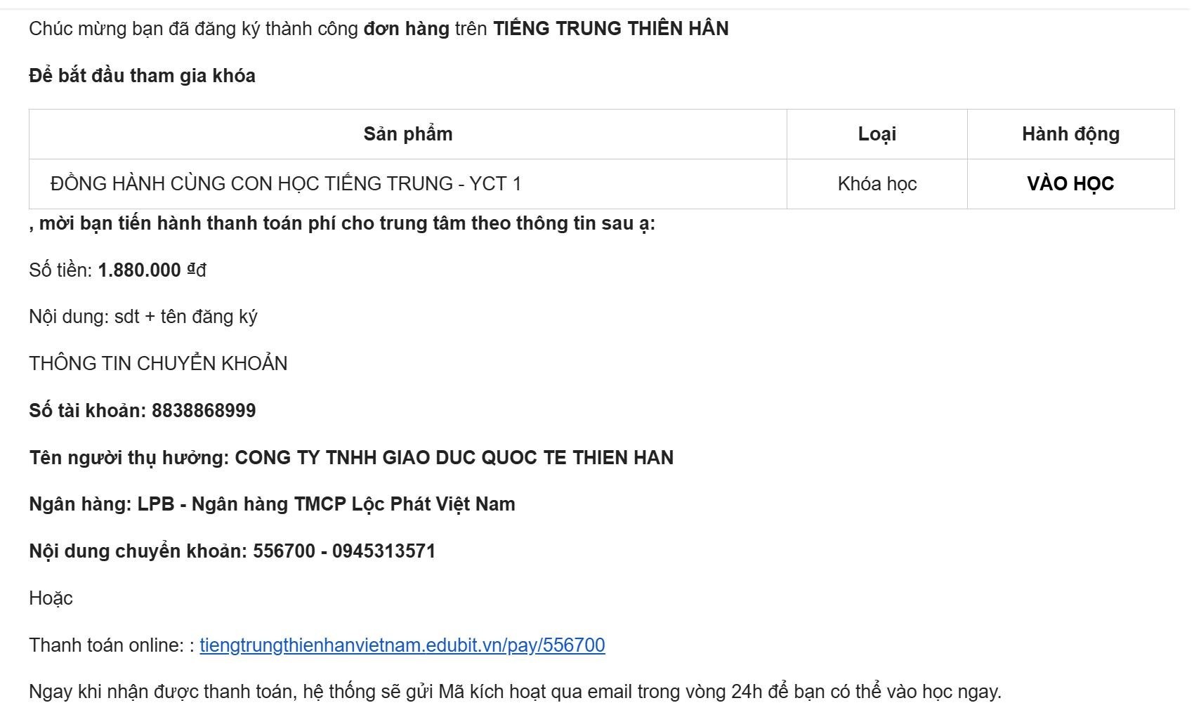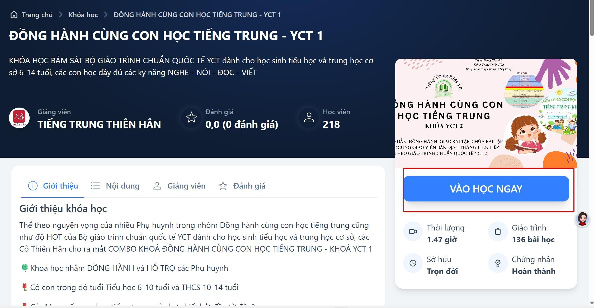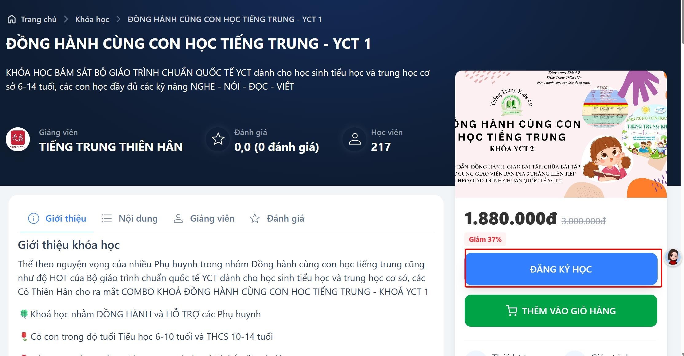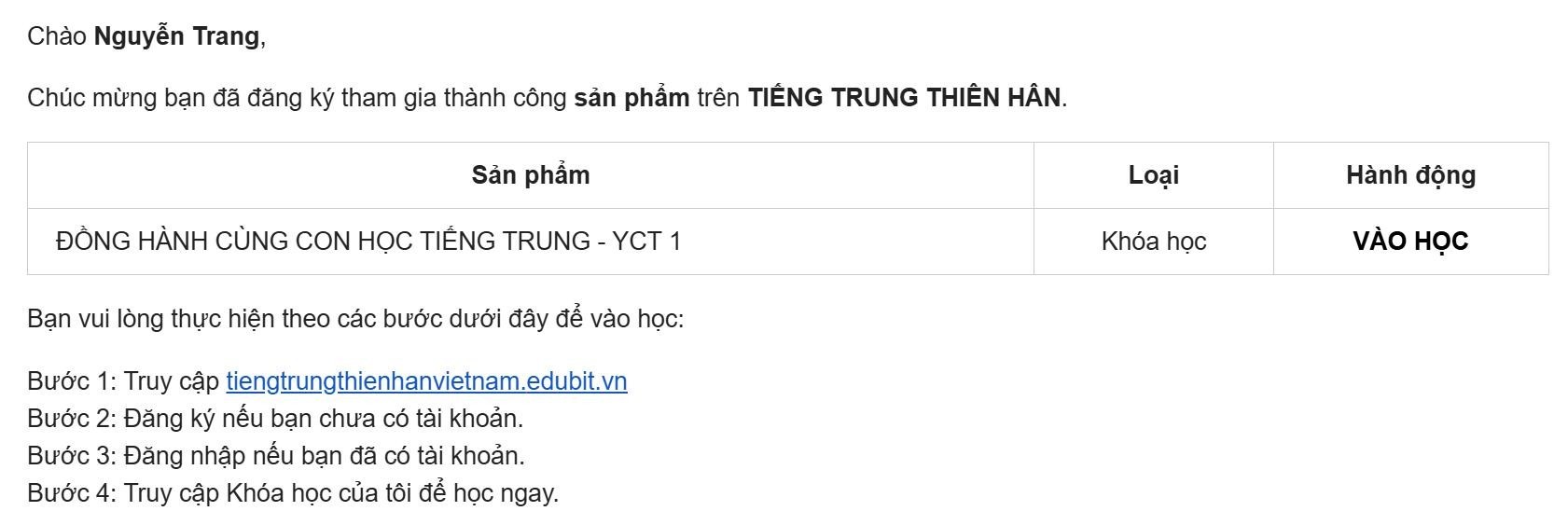 Bước 1: Truy cập https://tiengtrungthienhanvietnam.vn