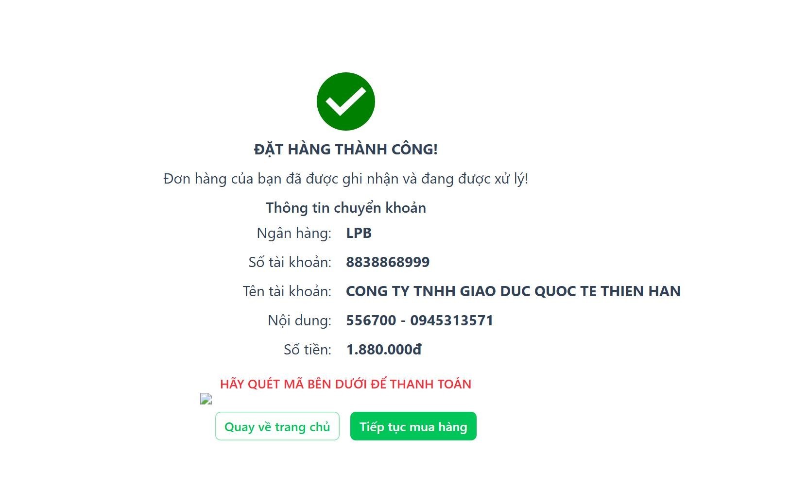 · Hình thức mua hàng và thanh toán tại website, chúng tôi có hình thức thanh toán qua chuyển khoản ngân hàng: